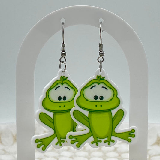 Green Frog Hook Earrings