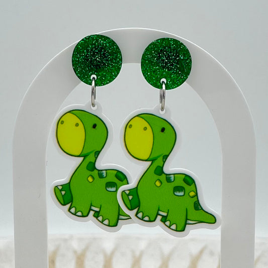 Green Dinosaur Earrings