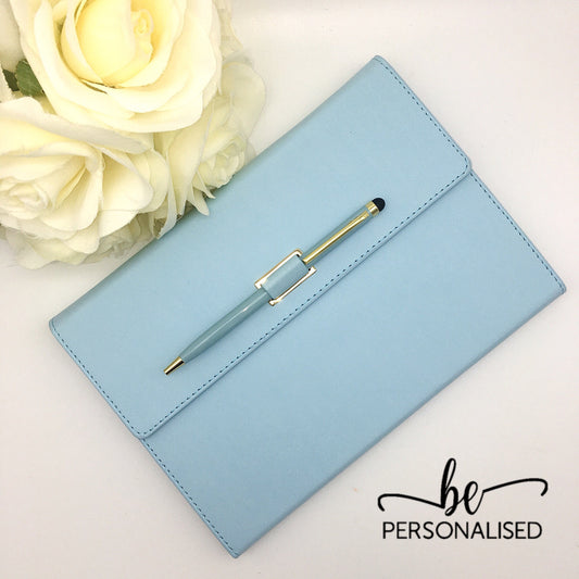 Light Blue PU Leather A5 Notebook with pen