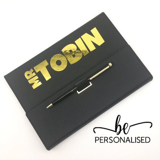 Black PU Leather A5 Notebook with pen